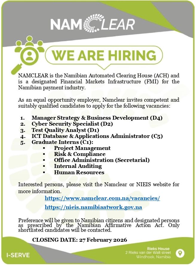 Namclear invites suitably qualified Namibian individuals to apply for its Graduate Internship positions.