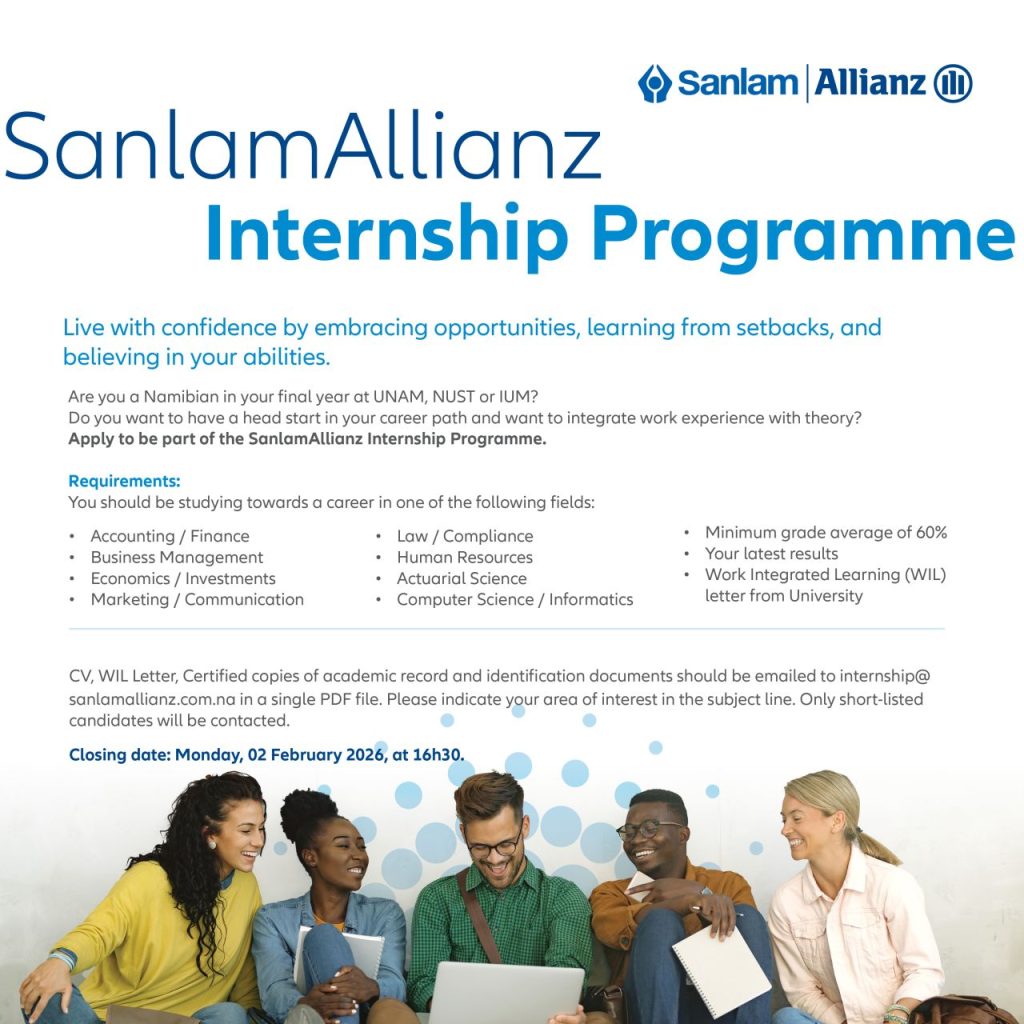SanlamAllianz Namibia invites applications for its 2026 Internship Programme.